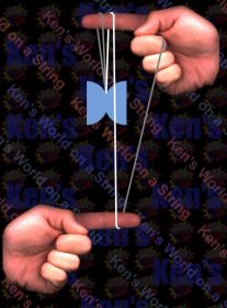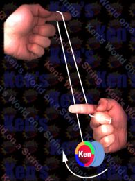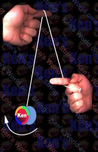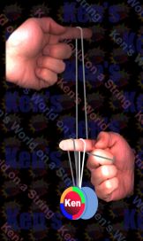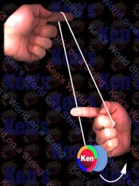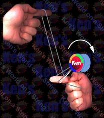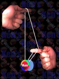 This trick starts with a "split bottom" mount. Start by throwing a sleeper and then draping the string over the left index finger. While draping the string over the left index finger, push the yo-yo away from you. This will give it some momentum to swing back towards the right index finger. |