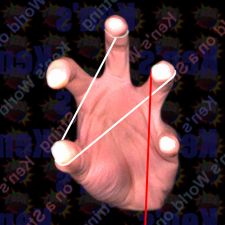 To complete the star formation the string goes up to your left middle finger like shown. |